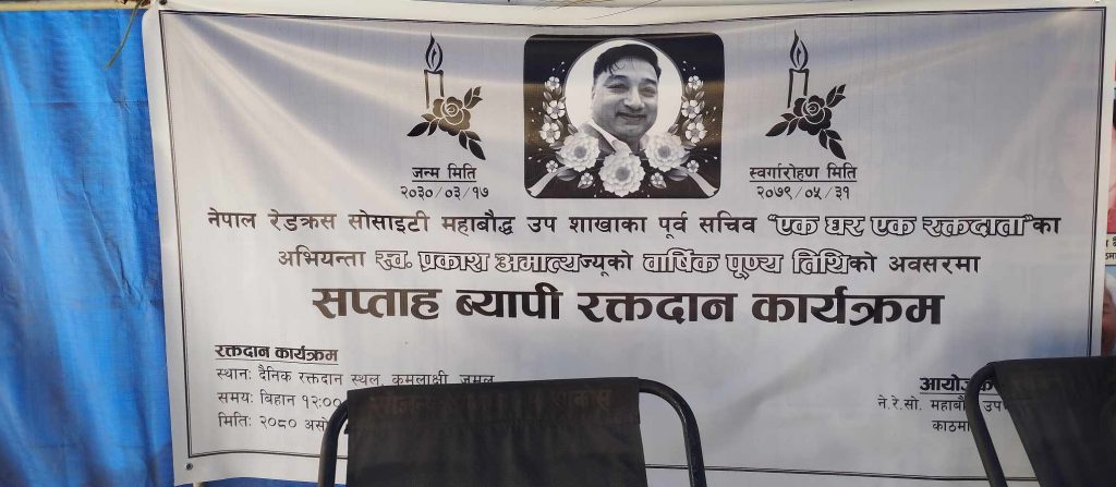 वातावरणविद् प्रकाशचन्द्र अमात्यको वार्षिक पुण्य तिथिको अवसरमा सप्ताहव्यापी रक्तदान शुरू