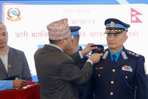 काठमाण्डौ – नवनियुक्त प्रहरी महानिरीक्षक (आईजीपी) दानबहादुर कार्कीले दर्ज्यानी चिह्न लगाउनुभएको छ । गृह मन्त्रालयमा आज विहान भएको कार्यक्रममा गृह–सचिव रामेश्वर दंगालले कार्कीलाई प्रहरी महानिरीक्षकको दर्ज्यानी चिह्न लगाइदिनुभएको हो । प्रहरी नियमावलीमा उल्लेख रहेको ३० वर्षे सेवा अवधिका कारण चन्द्रकुवेर खापुङ गएराति…