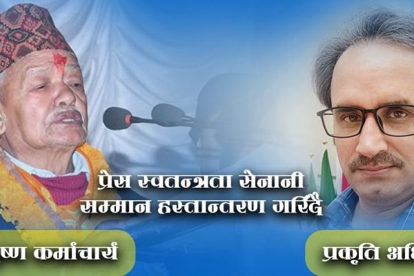 काठमाडौँ, पुस १० गते । पत्रकारिता क्षेत्रमा योगदान गरेका पत्रकारद्वय प्रकृति अधिकारी र रामकृष्ण कर्माचार्य सत्यनारायणबहादुर श्रेष्ठ प्रेस स्वतन्त्रता सेनानी पुरस्कार र सम्मानबाट सम्मानित हुनु हुने भएको छ । नेपाल पत्रकार महासङ्घका संस्थापक अध्यक्ष सत्यनारायणबहादुर श्रेष्ठको ११० औं पुण्यतिथिको अवसरमा हुने…