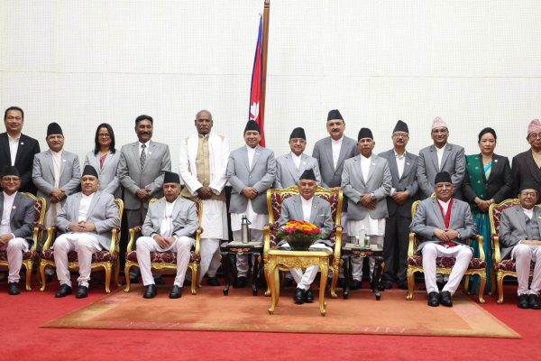 नवनियुक्त मन्त्रीहरूले आज शपथ लिएका छन्। राष्ट्रपति रामचन्द्र पौडेलले शितल निवासमा आयोजित कार्यक्रममा नवनियुक्त मन्त्रीहरूलाई शपथ खुवाएका हुन्। नेपाली कांग्रेसका उपसभापति पूर्णबहादुर खड्का उपप्रधानमन्त्रीसहित रक्षा मन्त्री बनेका छन्। यस्तै नेकपा माओवादी केन्द्रका उपाध्यक्ष नारायणकाजी श्रेष्ठ गृहमन्त्री बनेका छन्। एकीकृत समाजवादीका…