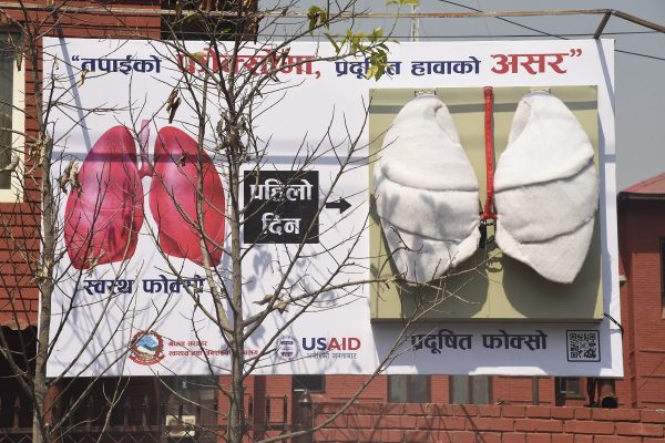 काठमाडौं – वायु प्रदूषणले मानव स्वास्थ्यमा पार्ने असरबारे जनचेतना जगाउन स्वास्थ्य मन्त्रालयले राखेको कृत्रिम फोक्सो १५ दिनमै कालो भएको छ । स्वास्थ्य मन्त्रालयका सह–प्रवक्ता डा. समीरकुमार अधिकारीले आज शुक्रवार विज्ञप्ति निकालेर मन्त्रालयको प्रवेशद्वारमा राखिएको जोडी कृत्रिम फोक्सो १५ दिनमै कालो भएको जानकारी…