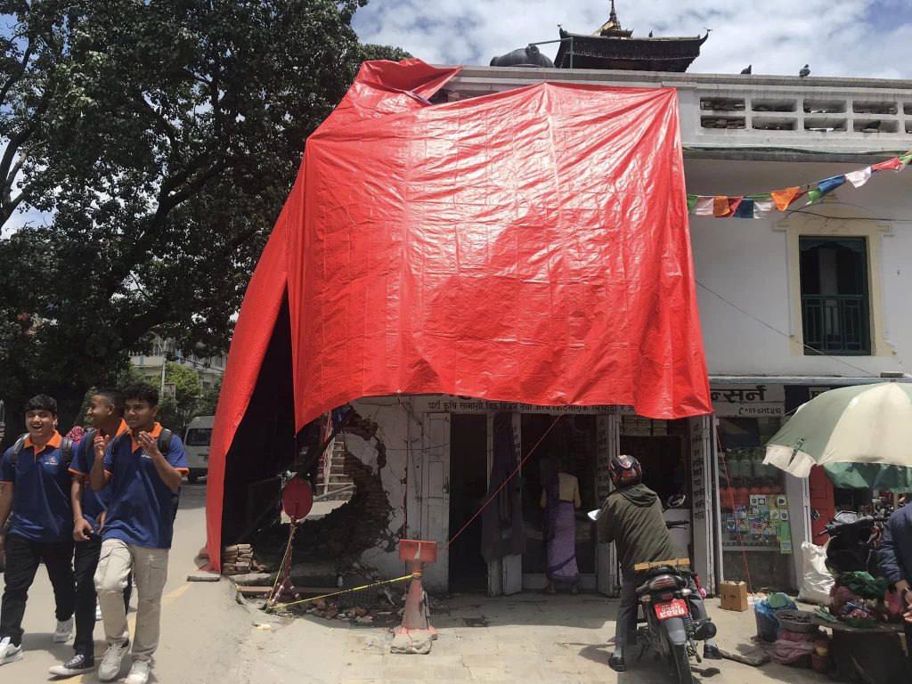 काठमाण्डौं – पानी ट्यांकरको ठक्करले क्षति पुर्याएको काठमाण्डौं महांकाल मन्दिरलाई अहिले पालले छोपेर टेको लगाएर राखिएको छ। १२ हजार लिटर क्षमताको ठूलो ट्यांकरको ठक्करबाट महांकाल मन्दिरको भित्तासहित भित्तामा राखिएको मूर्तिलाई पनि क्षति पुर्याएको थियो।