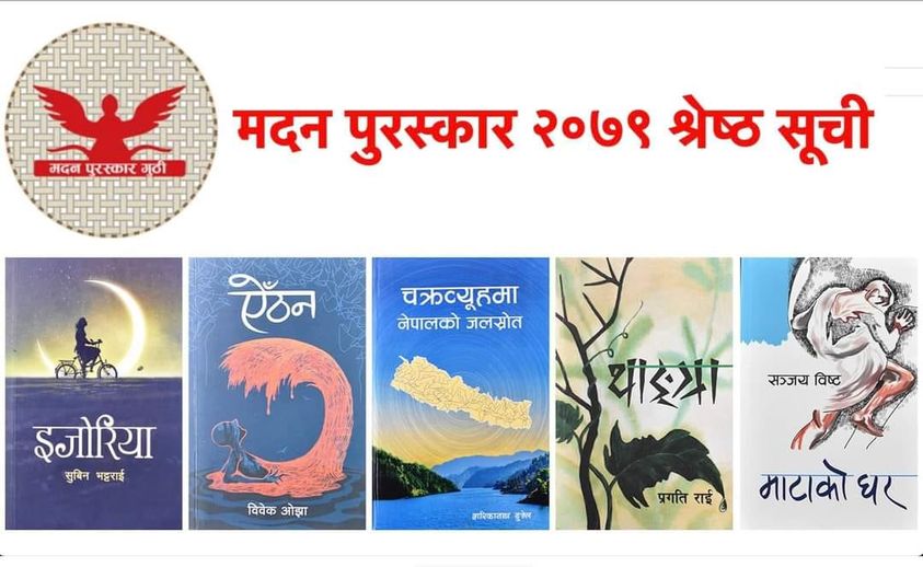 सुबिन भट्टराईको इजोरिया, विवेक ओझाको ऐँठन, द्वारिकानाथ ढुङ्गेलको चक्रव्यूहमा नेपालको जलस्रोत, प्रगति राईको थाङ्ग्रा र सञ्जय विष्टको माटाको घर मदन पुरस्कार–२०७९ का लागि छनौट भएका छन् ।