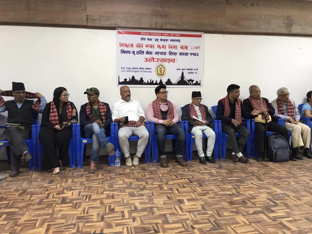 काठमाण्डाैं – वर्ल्ड नेवाः अंगनाइजेशन (डब्ल्यूएनओ) ले दोश्रो संस्करणको विश्व नेपालभाषा हाजिरी जवाफ प्रतियोगिताको उद्घाटन कार्यक्रम गर्दै सहभागी विद्यार्थीहरूलाई अभिमुखिकरण गरेको छ। डब्ल्यूएनओको केन्द्रिय अध्यक्ष संयुक्त श्रेष्ठको अध्यक्षतामा शनिबार काठमाण्डाैं डल्लुमा रहेको जगत सुन्दर विद्यालयमा भएको कार्यक्रममा वरिष्ठ समाजसेवी तथा साहित्यकार हितकरविर सिहं कंसाकारले प्रतियोगिताको उद्घाटन गर्नु भएको हो। ।