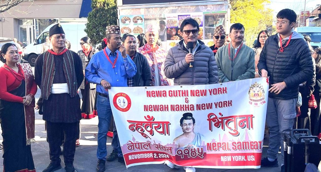 नेपाल सम्वतको नयाँ वर्ष ११४५ को उपलक्ष्यमा नेवाः गुठी न्युयोर्क र नेवाः नखः न्युयोर्कको संयुक्त आयोजनामा न्हू दँया भिंतुना र्यालीको आयोजना गरिएको छ । अमेरिकाको न्युयोर्कस्थित ज्याक्सनहाईटको डाइभर्सिटी प्लाजामा गएको नोभेम्बर २ तारिख शनिवारका दिन र्यालीको आयोजना गरिएको हो । न्हू दँया भिंतुना कार्यक्रम सुरु हुनु अगाडि उपस्थित सबैलाई परम्परागत रुपमा सगुन स्वरुप टीका, फूल र कोखा वितरण गरिएको थियो । नयाँ वर्षको उपलक्ष्यमा शुभकामना आदानप्रदान गर्दै सुरु भएको भिंतुना कार्यक्रमको सञ्चालन नेवाः नखः न्युयोर्कका महासचिव तुलसी नारायण चित्रकारले गर्नु भएको थियो । कार्यक्रममा नेवाः गुठीका अध्यक्ष विजय मान सिंले उपस्थित सबैलाई स्वागत गर्नुका साथै सबैलाई नयाँ वर्षको शुभकामना व्यक्त गर्नु भयो । उहाँले नेपाल सम्वतको महत्त्व र औचित्यको बारेमा जानकारी गराउनु भएको थियो ।