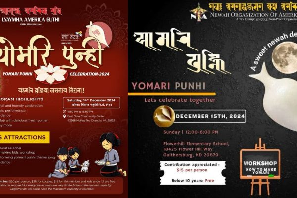 नेवा: समुदायले मनाउने यःमरि पुन्हि अर्थात् योमरी पूर्णिमा यस वर्ष अमेरिकाको डिसी महानगर क्षेत्रमा उल्लासका साथ मनाईदैछ। ल्याय्म्हा अमेरिका गुठी र नेवा:अर्गनाइजेसन अफ अमेरिकाले क्रमस डिसेम्बर १४ र १५ मा दिन कार्यक्रम हुने भएको छ। डिसेम्बर १४ मा साँझ ४:३०…
