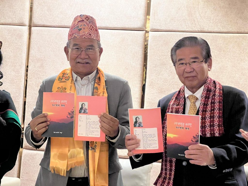 नेपाल जापान ७० दँ कार्यक्रम समितिया ग्वसालय् यलया ग्वार्क्वय् म्हिगः ने.सं. ११४५ चिल्लागाः दसमि, सोमबारखुन्हु ललितपुर महानगरपालिकाया प्रमुख चिरिबाबु महर्जनजुया मूपाहांसुइ जापान देय्या फुजिनोमिया नगरपालिकाया मेयर हिदेताडा सुदोजुया लिसें झिंन्हय्म्ह जापानी सरकारी पुचःयात विदाइ ज्याझ्वः अले साहित्यकार रिता महर्जनया चिबाखं सफू ‘त्वःफ्यूगु स्वापू’या पितब्वज्या ज्याझ्वः जूगु दु ।