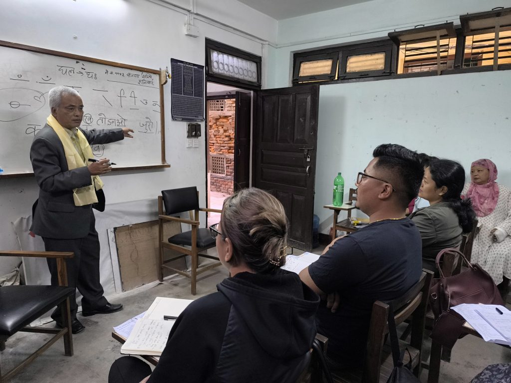थ्यं मथ्यं प्यघौतक न्ह्याःगु उगु कक्षा क्वचायेकाः ब्वति कयादीपिनिपाखें जगदिश श्रेष्ठं कक्षा तसकं सार्थक जूगु व माःकथं लिपा लिपा थुजाःगु कक्षा न्ह्याकावं वनेमाःगु खँ तयादिसें थथे नेवाःभाय् खःकथं च्वयेत माःगु आधारभूत खँ स्यनादीगुली सुभाय् द्यछासे पौभाः साय्मियात मतिनाया चिं तकं द्यछाया दीगु खः । लिपतय् पौभाः साय्मिं थुजाःगु ज्याझ्वःया ग्वसाः ग्वयाः ह्वःता चूलाका दीगुली सुभाय्या लिसें कृतज्ञता नं प्वंकादीगु व थथे झीगु अःपुगु यइपुगु व न्ह्यइपुगु नेवाःभाय् खःकथं ब्वनेच्वये यायेत माःगु आधारभूत खँ स्यनेकने कक्षा न्ह्याम्हस्यां ग्वसाः ग्वःसां थः न्ह्याबलें ग्वाहालि यायेत तयार दुगु धकाः नं नुगःखँ तयादिल ।
