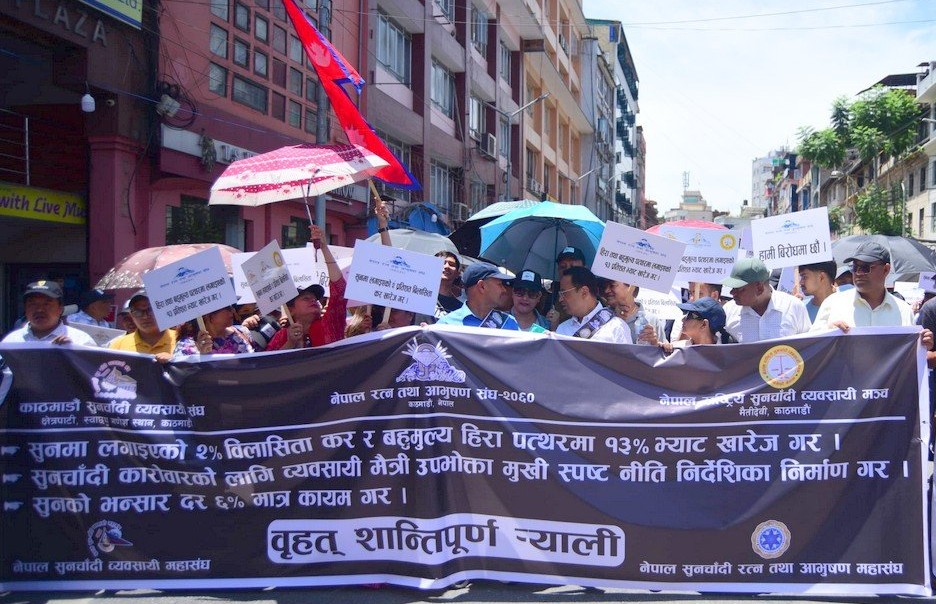 नेपाल सुनचाँदी रत्न तथा आभूषण महासंघ र नेपाल सुनचाँदी व्यवसायी महासङ्घले बुधबार ऱ्याली सहित कोणसभा कार्यक्रम गरेका छन्।
