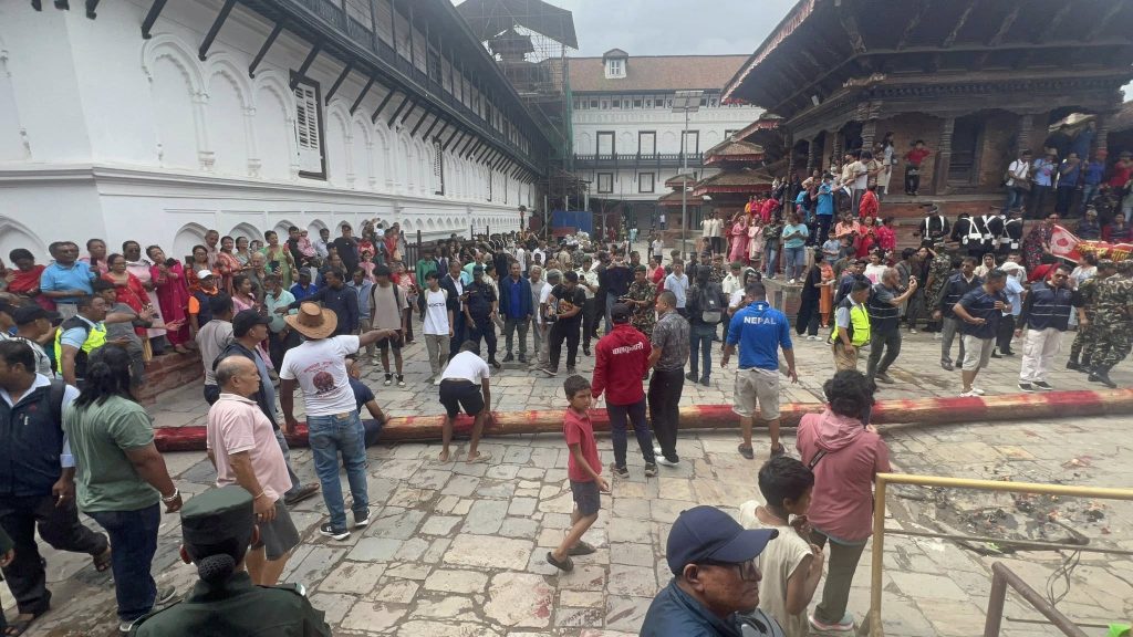 यसिं प्रत्येक वर्ष नालाबाट भोटाहिटी ल्याइन्छ । यस वर्ष पनि नालाबाट ल्याइएको यसिंलाई आज नगर प्रवेश गराई हनुमानढोका स्थित कालभैरव अगाडि राखिदैछ । बिहिबार (भाद्र १९ गते) विशेष साइतमा यसिं थनेगु (इन्द्र ध्वजोत्थान) अर्थात् ध्वजोत्थान विधि सम्पन्न गरिन्छ ।