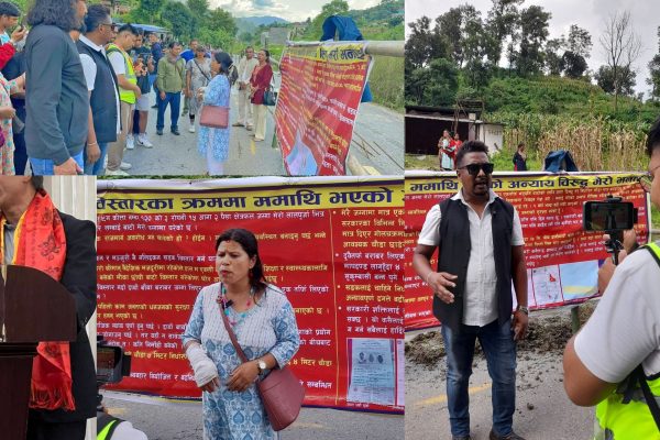 काठमाडौं । धादिङको धार्के सडकमा नेवा: राष्ट्रिय परिषदको नेतृत्वमा स्थानीयवासीले तारबार लगाएका छन् । धार्के, साविक केबलपुर धुनिबासी नगरपालिका–५, ९ ग कित्ता नं. १२० मा नेपाल सरकारको सडक विभागले जग्गाधनी बिमला महर्जनको निजी जग्गामा बिना सहमति र मापदण्ड विपरीत ३…